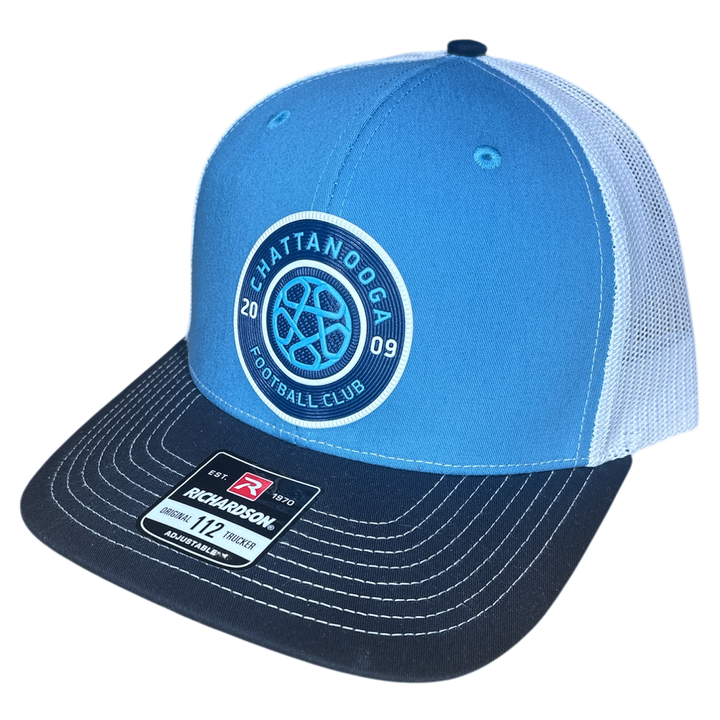 Show your CFC pride with this fresh Richardson Trucker Hat, featuring a bold sky-blue crown, navy bill, and breathable white mesh back. The front is finished with a high-quality 3D PVC Chattanooga FC crest, giving the hat a modern, durable, standout look. Built on the iconic Richardson 112 silhouette, famous for its comfort, structure, and everyday wearability, this hat is a perfect matchday essential or casual daily accessory.